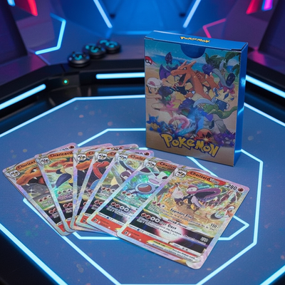 💎 55 Unique Diamond Foil Cards – A premium diamond foil finish brings out the brilliance in each card, featuring GX, V, VMAX, GMAX, and Legendary Pokémon like Charizard 🔥, Pikachu ⚡, and Mewtwo 💜.