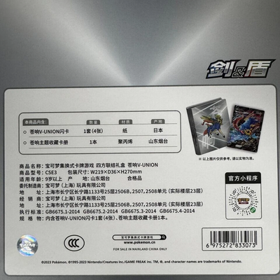 Zacian V-Union Gift Box (Simplified Chinese Edition) – Includes a rare Zacian V-Union promo card, 4 Pokémon TCG booster packs, a Zacian-themed binder, and comes factory sealed for authenticity, making it a valuable collectible for Pokémon fans worldwide.
