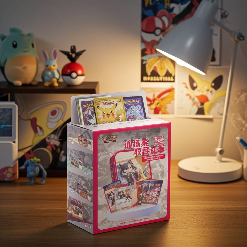 Exclusive Pokémon Trainer Collector’s Set – Includes 1 stunning Trainer Promo Card with premium artwork, 64 beautifully designed Trainer Art Sleeves to protect your cards, a durable collectible metal tin for storage, three powerful booster packs (CS4aC, CS4bC, and CS4.5C) packed with rare Pokémon cards, and 8 unique trainer styles — making this the ultimate collectible set for every Pokémon fan.